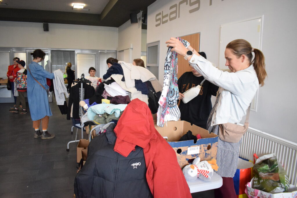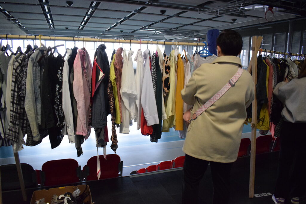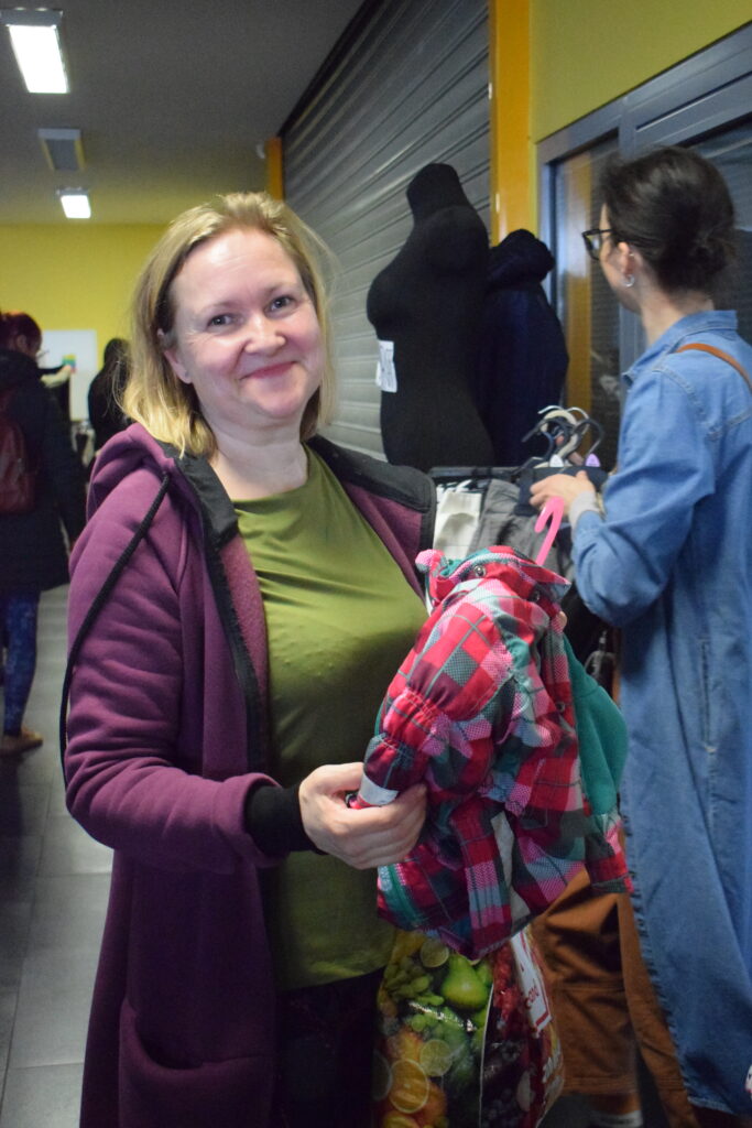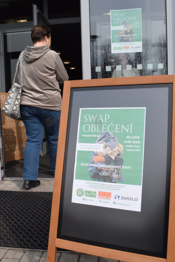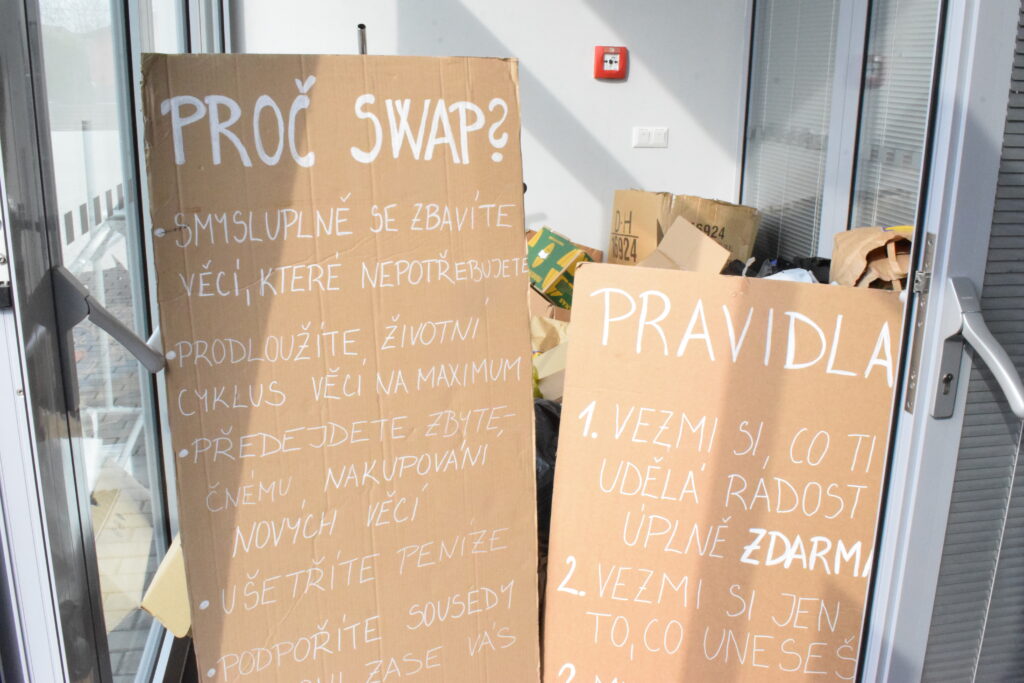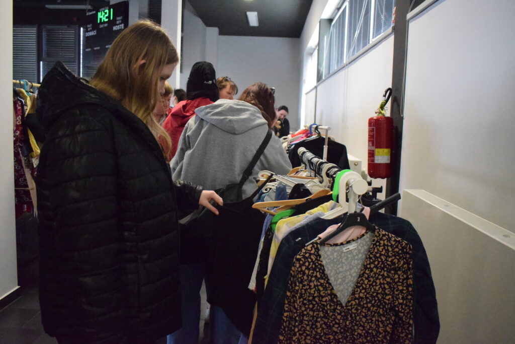 Tentokrát jsme zkusily trochu jiná pravidla a omezily jsme odnesené věci na jednu tašku, aby měl šanci vybrat si i ten, kdo přijde později, a aby první hodinu nezmizelo všechno, co má zip, knoflíky a ještě drží tvar.