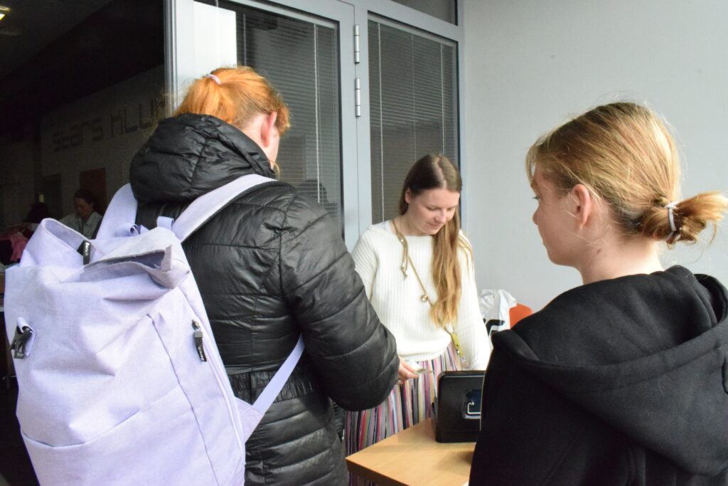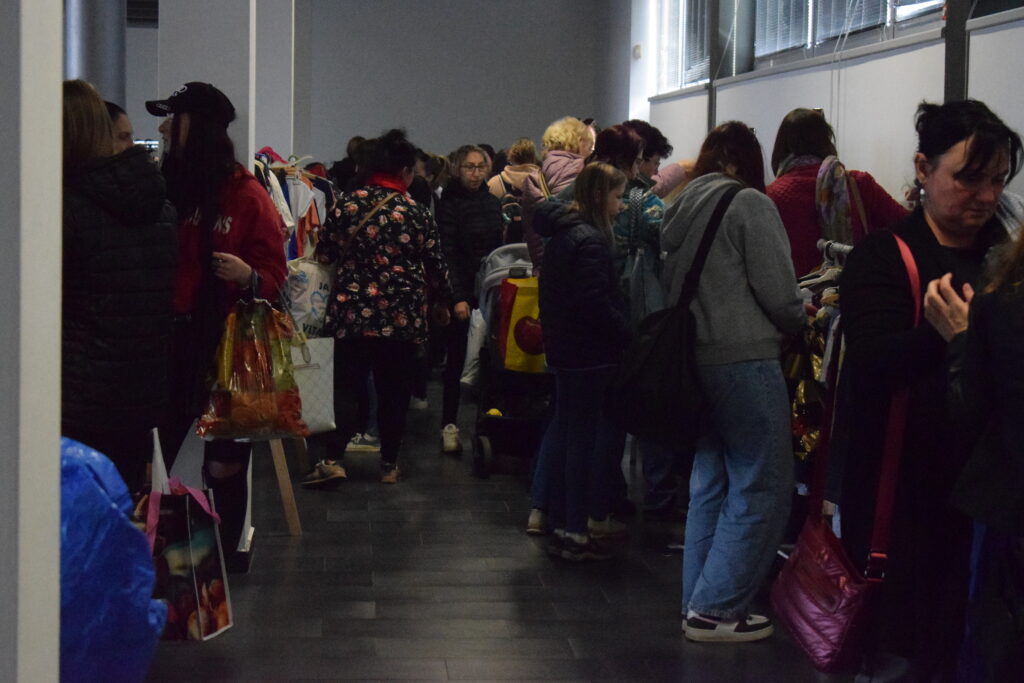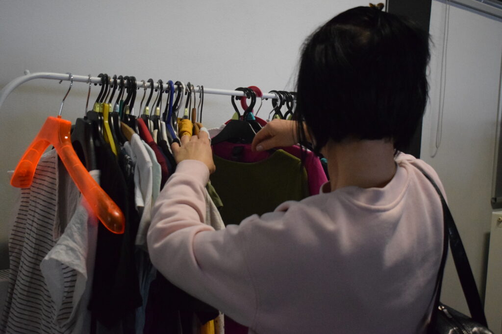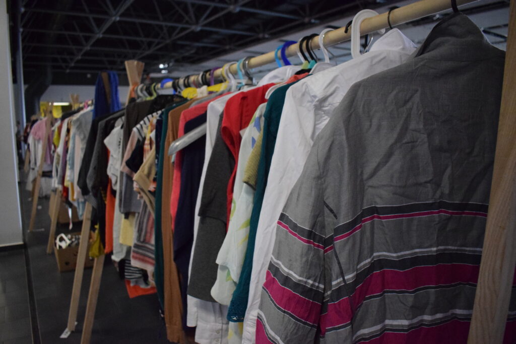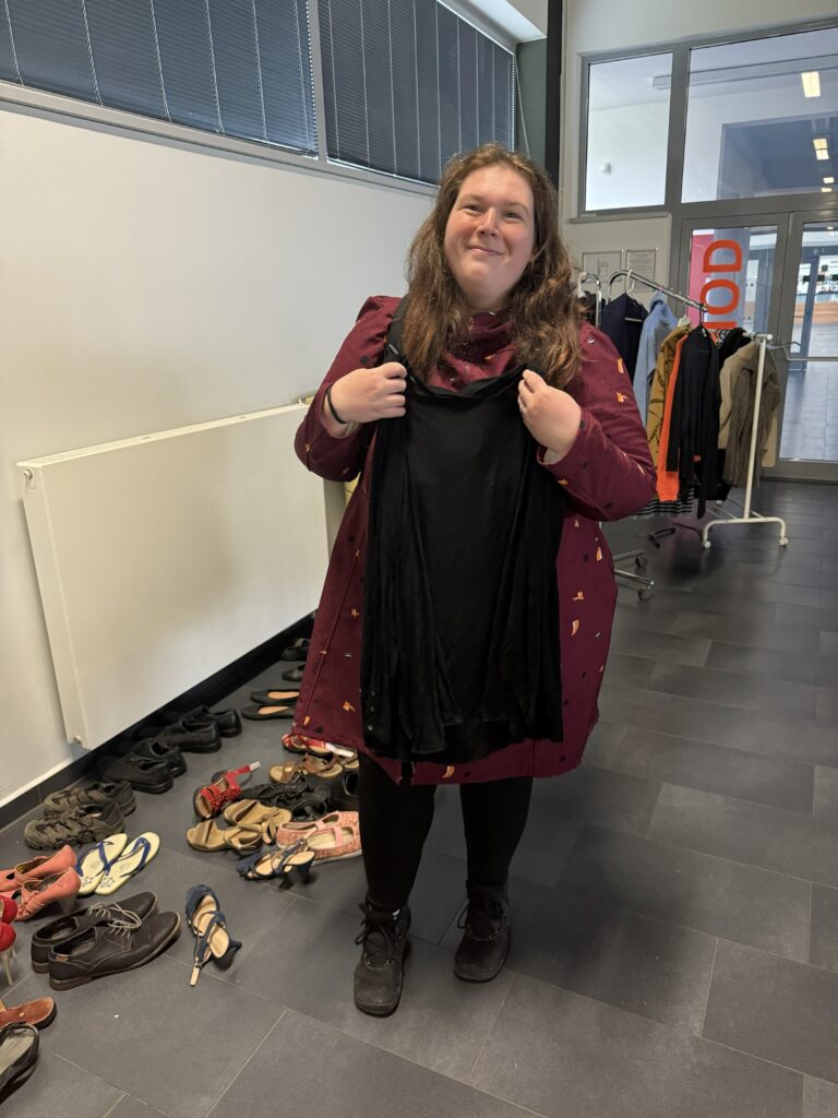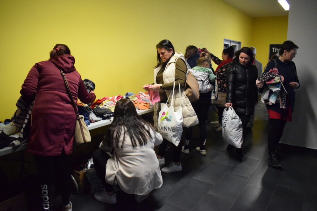 Tentokrát jsme zkusily trochu jiná pravidla a omezily jsme odnesené věci na jednu tašku, aby měl šanci vybrat si i ten, kdo přijde později, a aby první hodinu nezmizelo všechno, co má zip, knoflíky a ještě drží tvar.